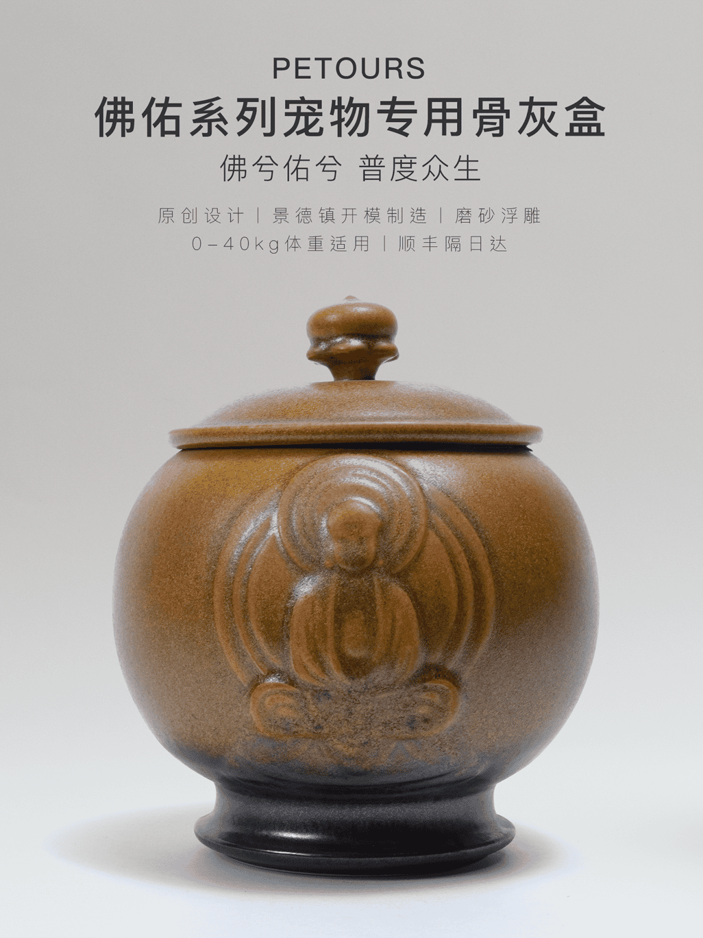 佛佑系列宠物专用骨灰盒是PETOURS彼渡品牌的一项特别推出,致敬佛教精神,为您的宠物提供一份永恒的祝福与庇佑。