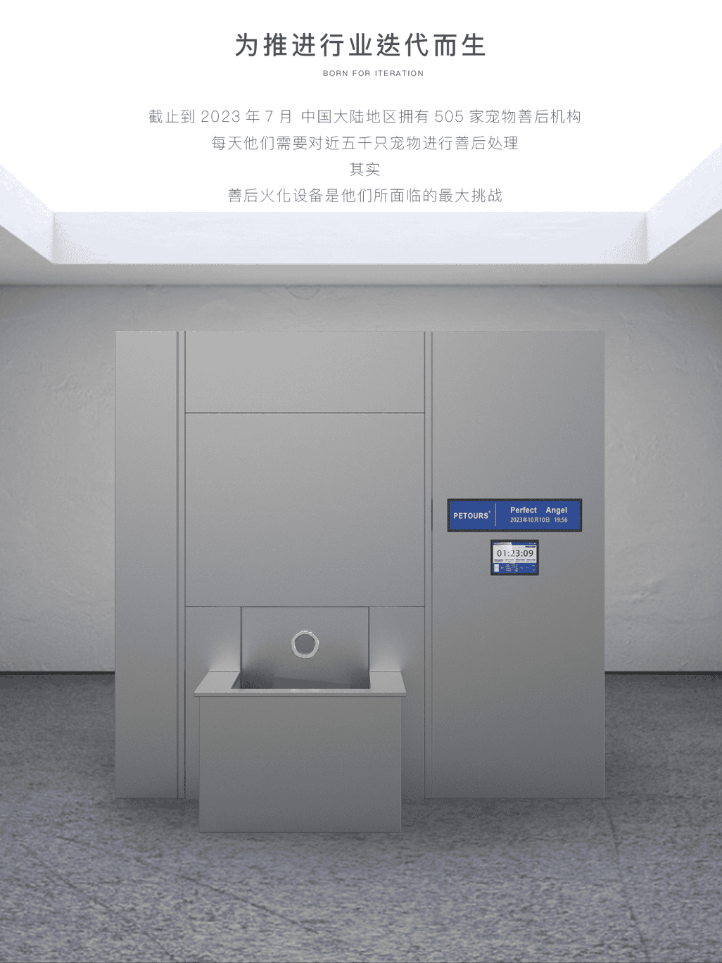 PETOURS PRO-1由前宠慕创始人李超设计生产,8年一线从业经验,深知火化设备对于宠物善后机构的重要性,2021年联合国内头部善后机构共同研发,2023年,首款颠覆性宠物火化系统PRO-1面市。